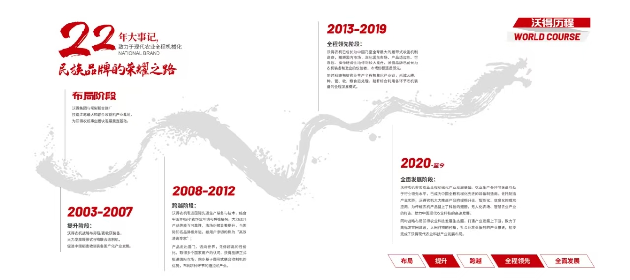 沃得農(nóng)機(jī)隸屬于中國民營企業(yè)500強(qiáng)之一的江蘇沃得集團(tuán),占地面積3000余畝,員工8000余人,2016年實(shí)現(xiàn)銷售70億元人民幣,是一家集研發(fā)、生產(chǎn)、銷售、服務(wù)于一體的大型現(xiàn)代化農(nóng)機(jī)裝備制造企業(yè)。沃得農(nóng)機(jī)立足水田,致力于現(xiàn)代農(nóng)業(yè)全程機(jī)械化,歷經(jīng)近30年發(fā)展,產(chǎn)品形成以耕-種-田間管理-收獲-秸稈綜合利用-糧食后處理全系列產(chǎn)品線。依托優(yōu)質(zhì)的產(chǎn)品和誠信的服務(wù),公司產(chǎn)品暢銷全國28個省市自治區(qū),出口至世界38個國家和地區(qū)。